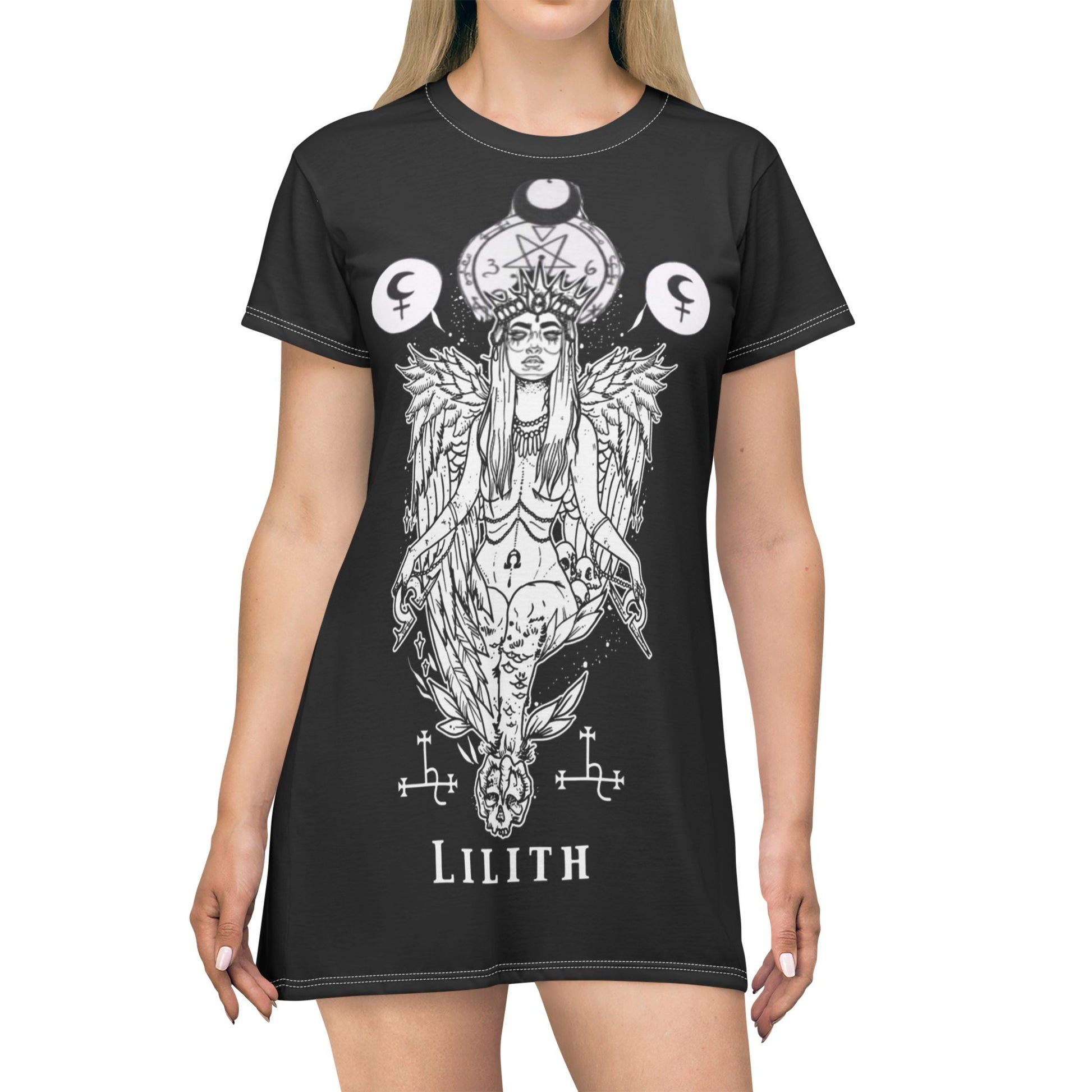 Lilith Goddess Graphic T-Shirt Dress — Bold Black AOP Dress